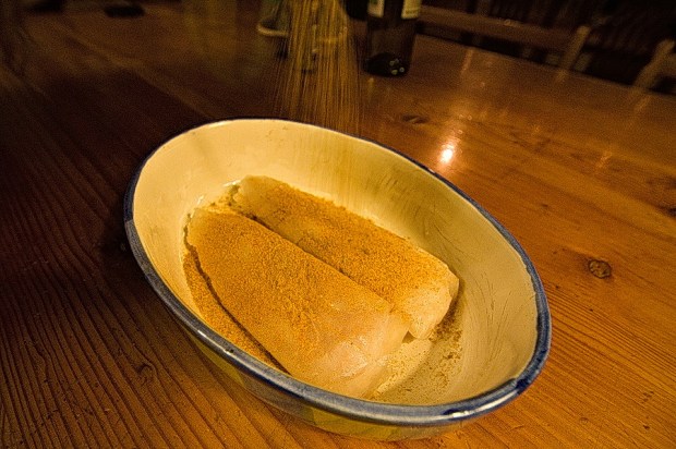 Turn the fillets around and do the same on the other side. First spice, then butter.