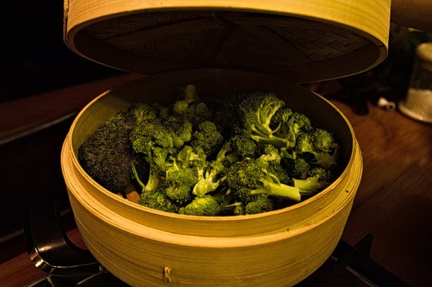 Sprinkle some good old veggie spice onto the broccoli before closing the lid and letting it steam. Steaming time depends on how crunchy you like your veg, so check regularly by poking it with a fork.