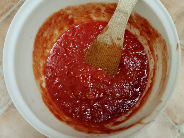 - For the veggies, mix the canned tomatoes, tomato paste and sun-dried tomatoes in a bowl. Include the oil from the sun-dried tomatoes too.