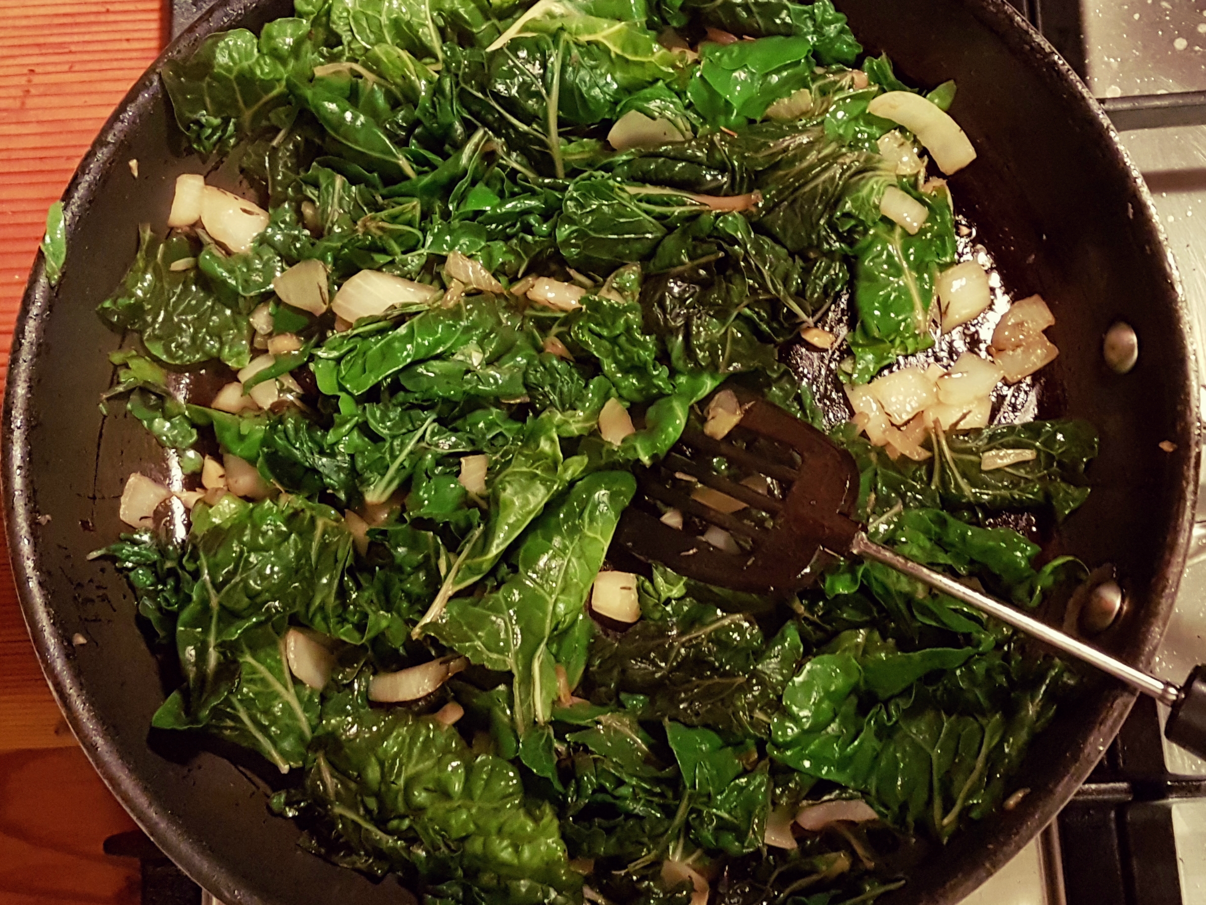 4. Add the spinach and cook until it wilts.