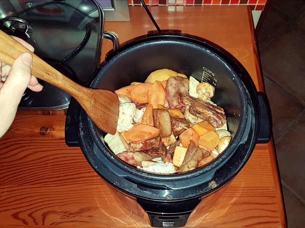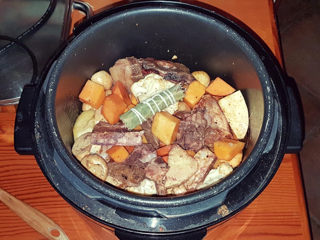 Lucky for us our freezer had a sneaky pack of stewing meat at the back, so stew is what we had! I wasn’t in the mood for effort and frills so of course the pressure cooker came out to play once more.