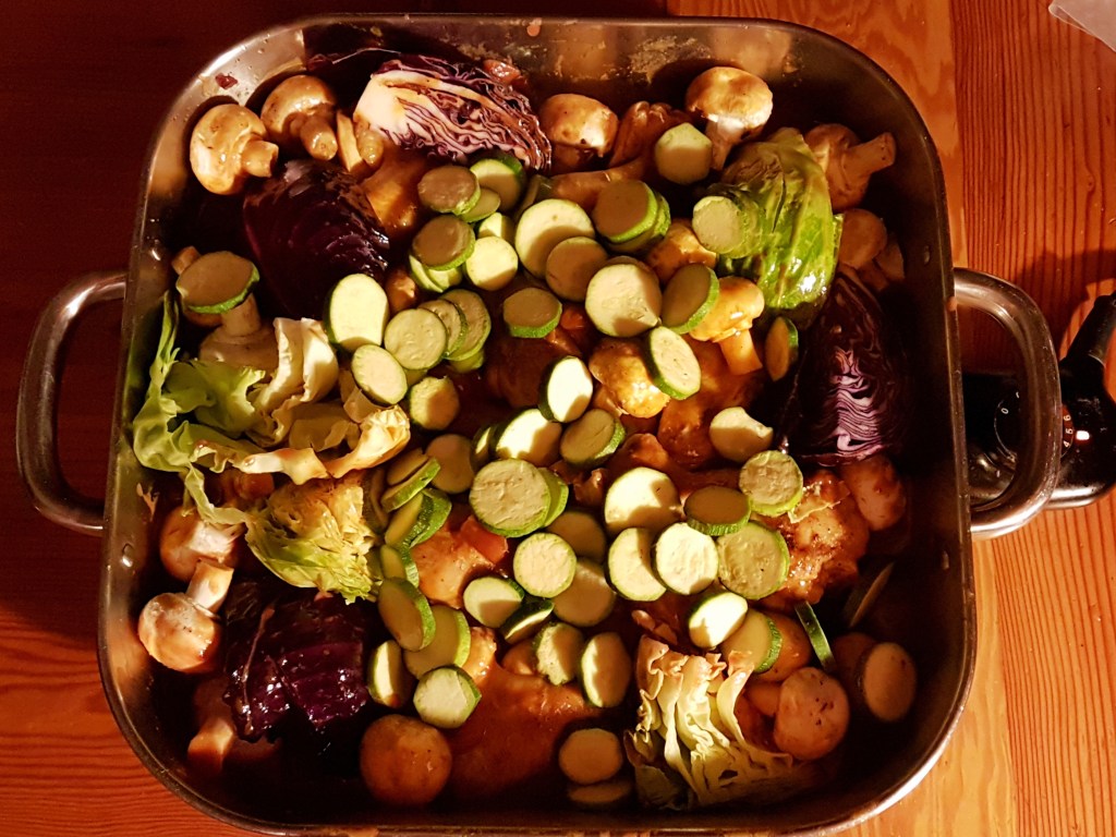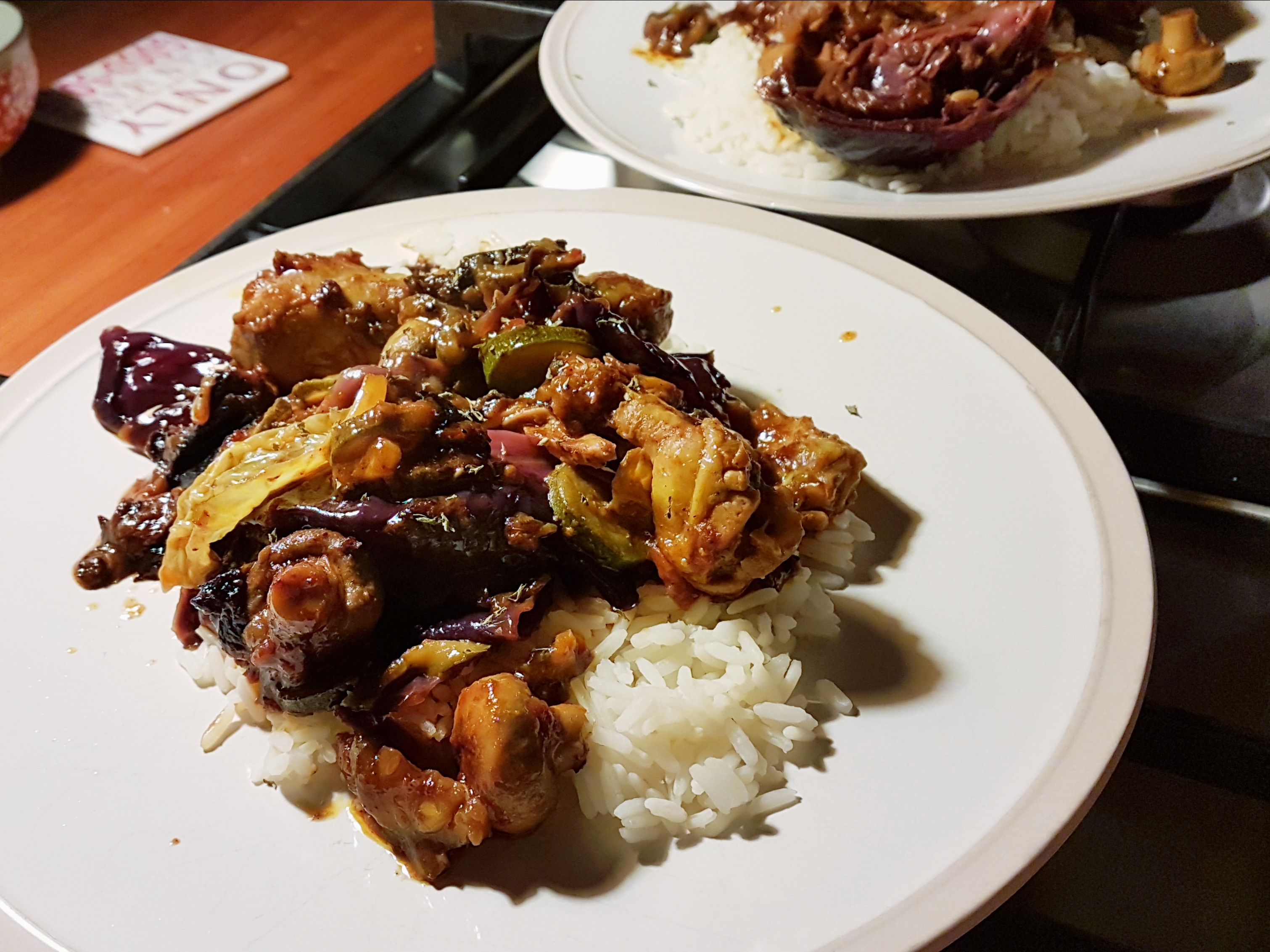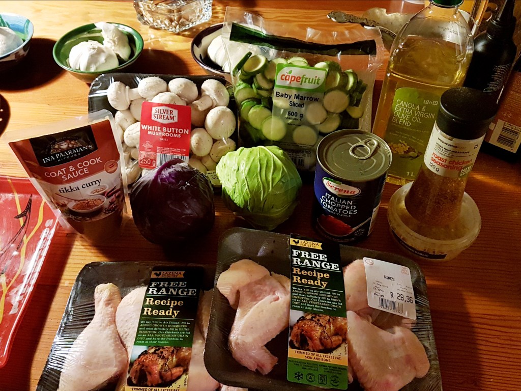 Last night I decided to go the easy route again and use a coat & cook sauce — Ina Paarman’s this time around. I also tried a new veggie addition — cabbage — and it turned out really great!