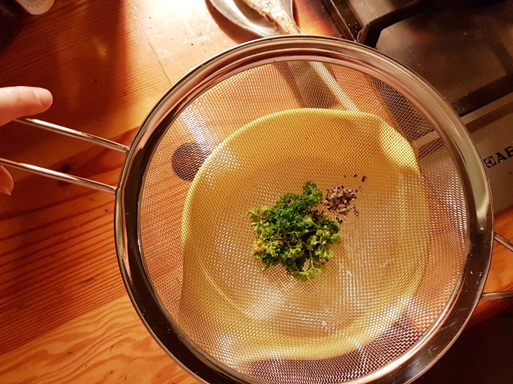 - When the bolognese filling has thickened to your liking, turn the heat off and start making your white sauce. Add the milk, parsley, nutmeg and pepper to a pot and bring it to the boil. Then strain it and let the milk cool down a bit.