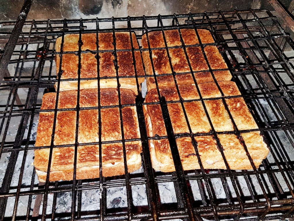 - Place the braaibroodjies on a grid and cook over medium to low heat coals. Remember to keep an eye on them and turn regularly so they don’t burn.