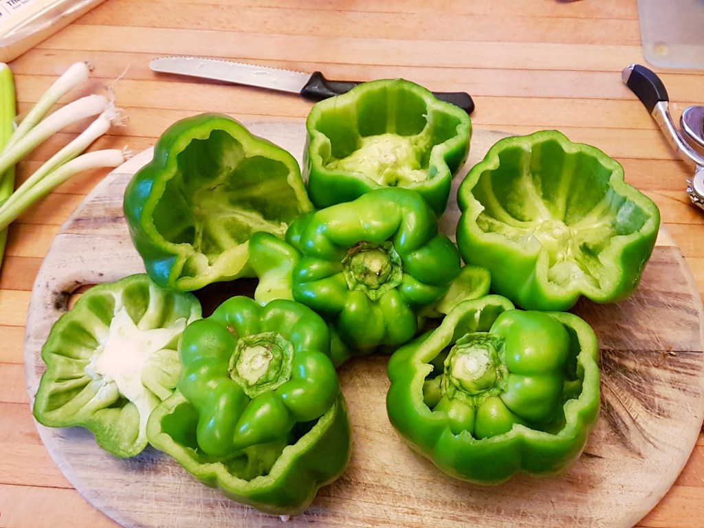 Over this past weekend I indulged in a great sales offer that gave me a big bag of green peppers for next to nothing, so I decided to stuff them all last night.