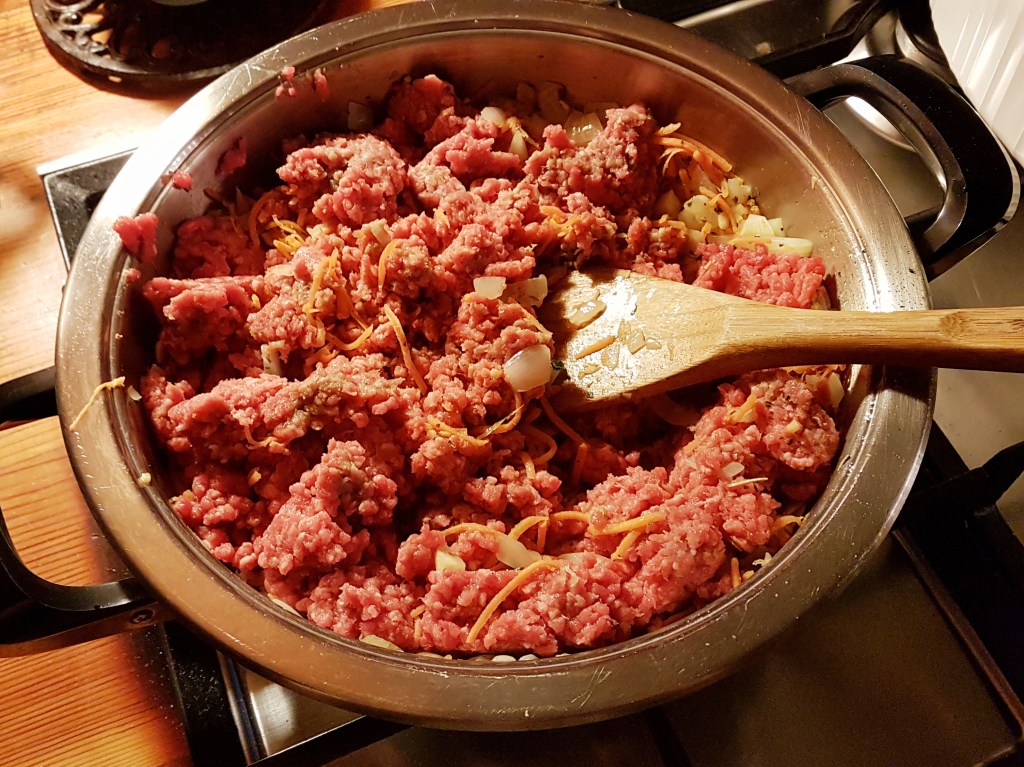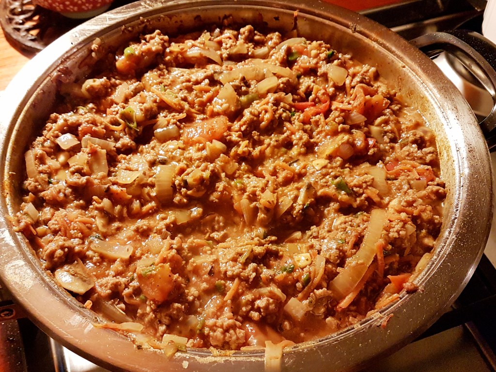 Who’s hungry? Vincent, Roan and I. This recipe serves three — with the possibility of some leftover mince filling that can be used in a pasta or jaffle the next day.