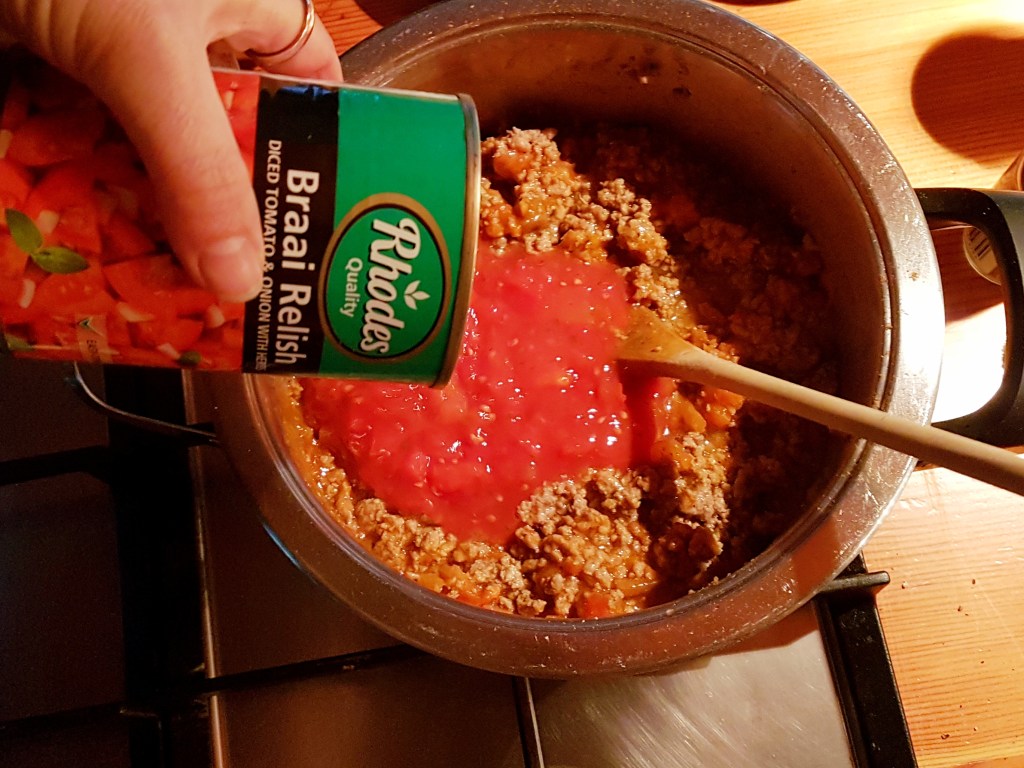 - 1 can tomato & onion mix (I used Koo braai relish)