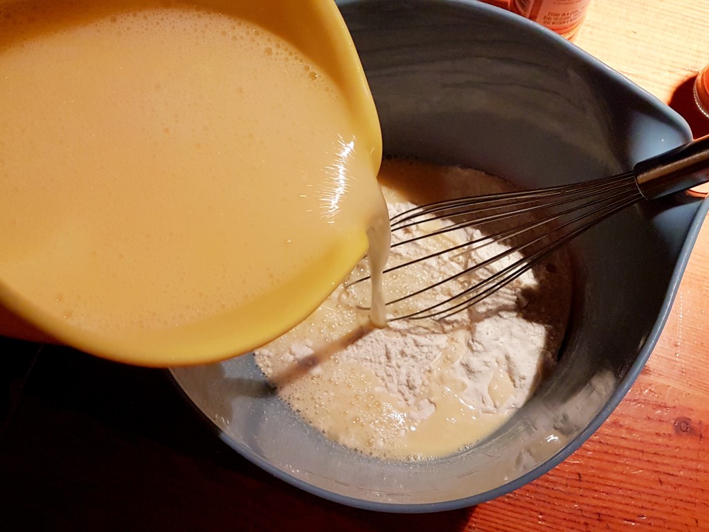 - Whisk the mixture until super smooth and very runny. Add more water if it’s not runny enough.