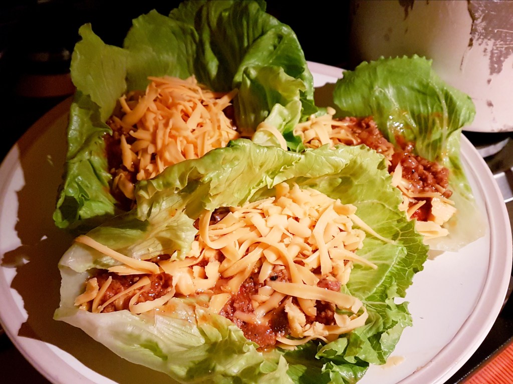 If you’re like me and want to enjoy carb-free rolie-polies, get your lettuce, fill it with mince and grate some cheese on top.