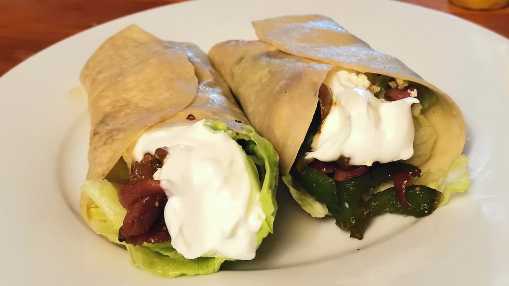Carb Free Wraps with Honey-glazed Bacon & Green Pepper