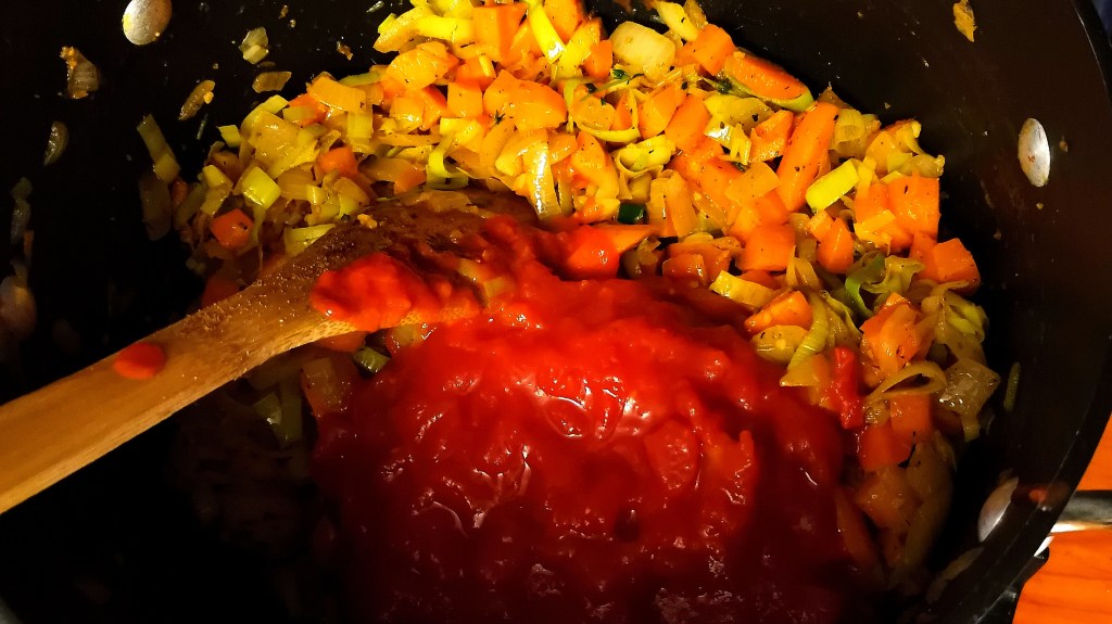 - Using the olive oil, sauté the onion, carrots and leeks inside a big pot.