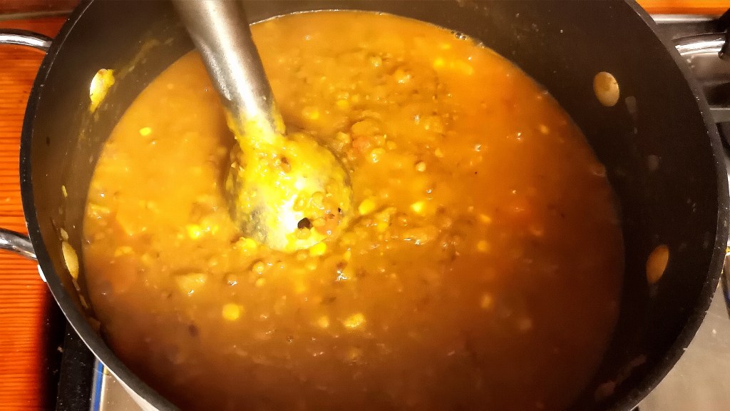 - Use a hand blender and blitz some of the soup to thicken its consistency.