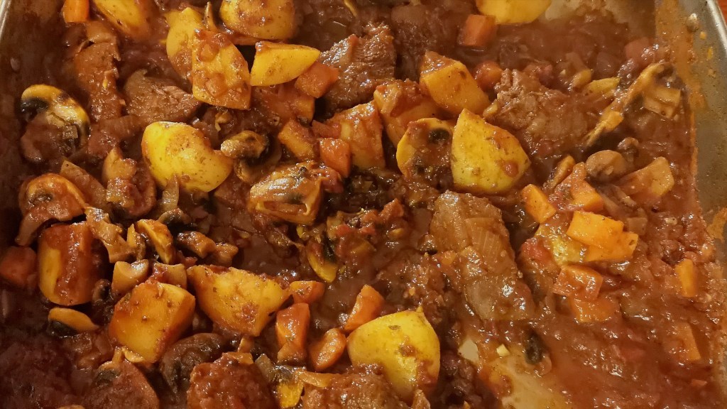 - 500 g ostrich goulash meat (or just largely cubed chunks of meat)
