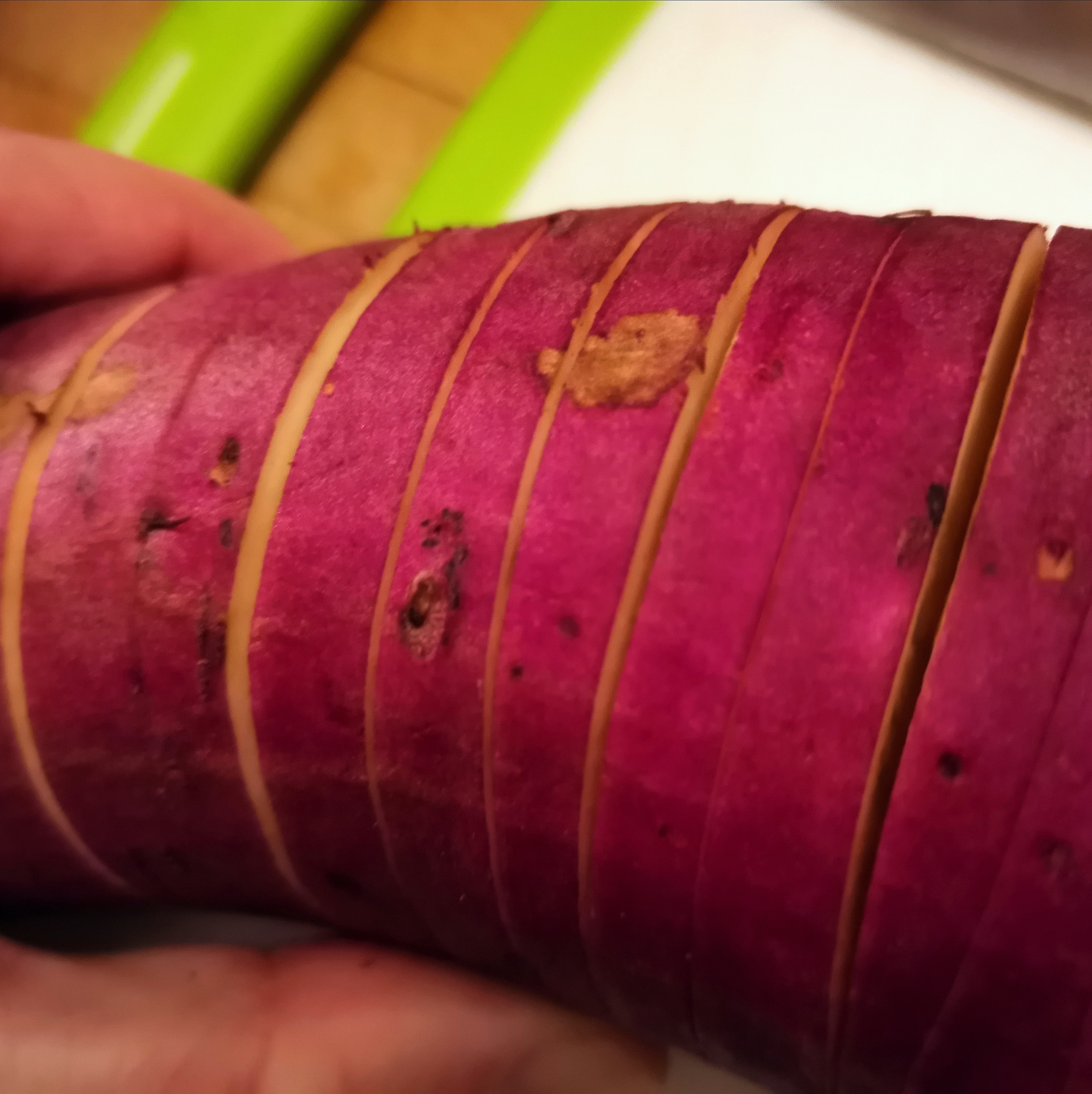 - 1 large sweet potato, sliced hasselback style