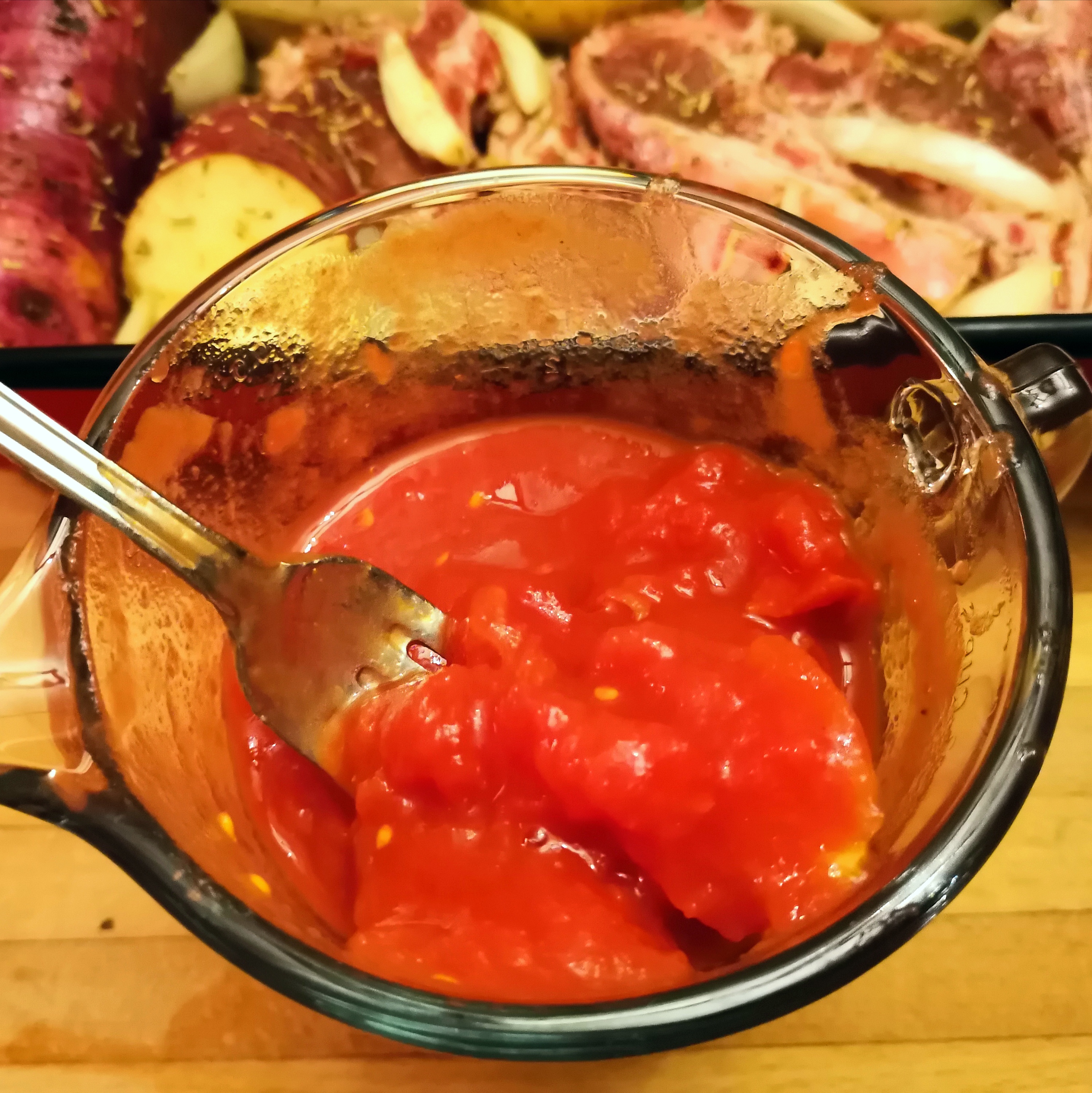- Make the tomato sauce by combining the canned tomatoes, chutney, rest of the herbs, salt and pepper in a separate container. Then cover the chops in tomato sauce.