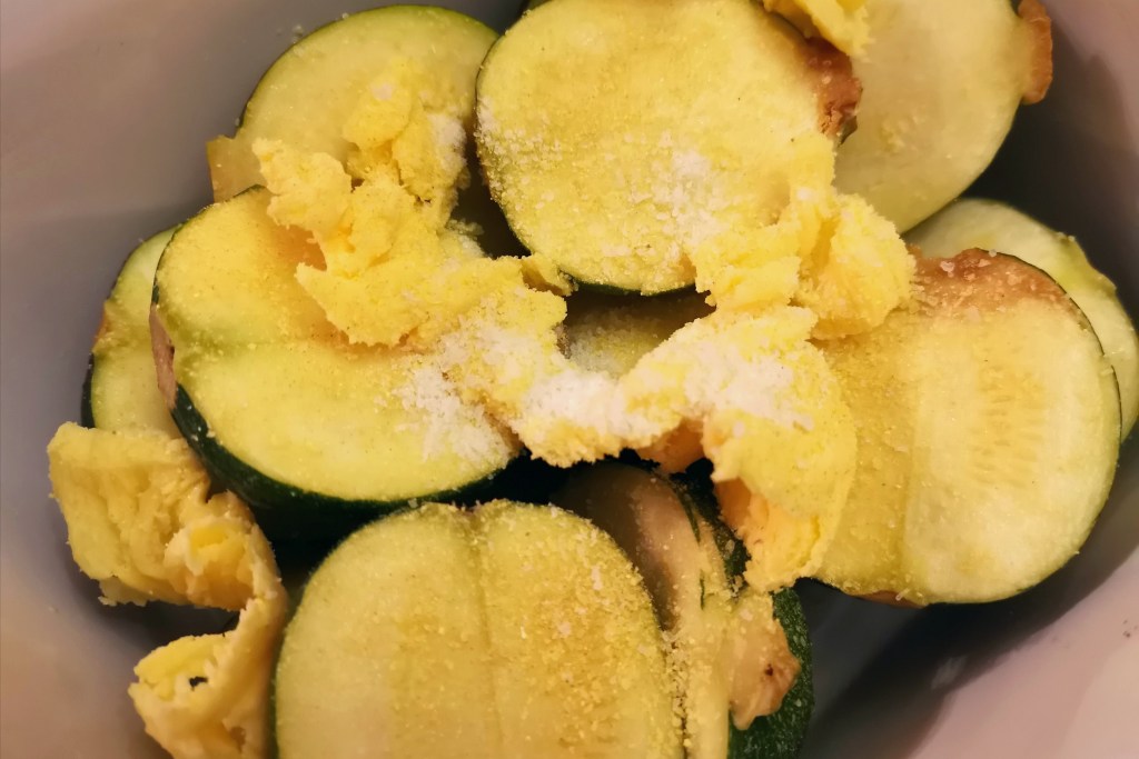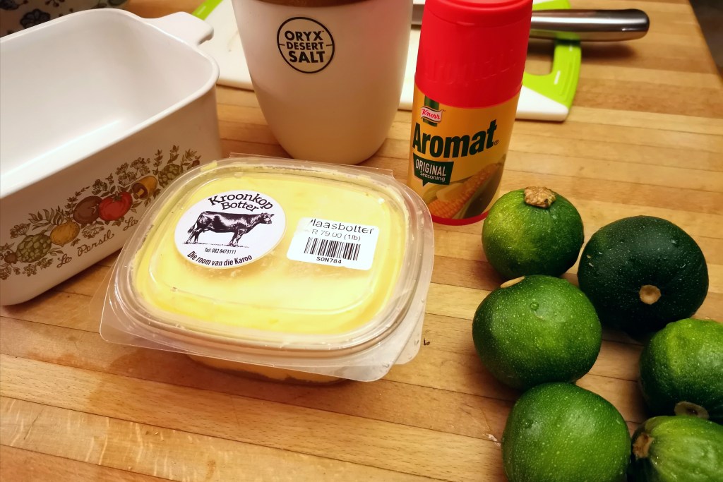 I decided last minute that I needed something green on my plate too, so here’s how I made baby squashies to go with our main meal.