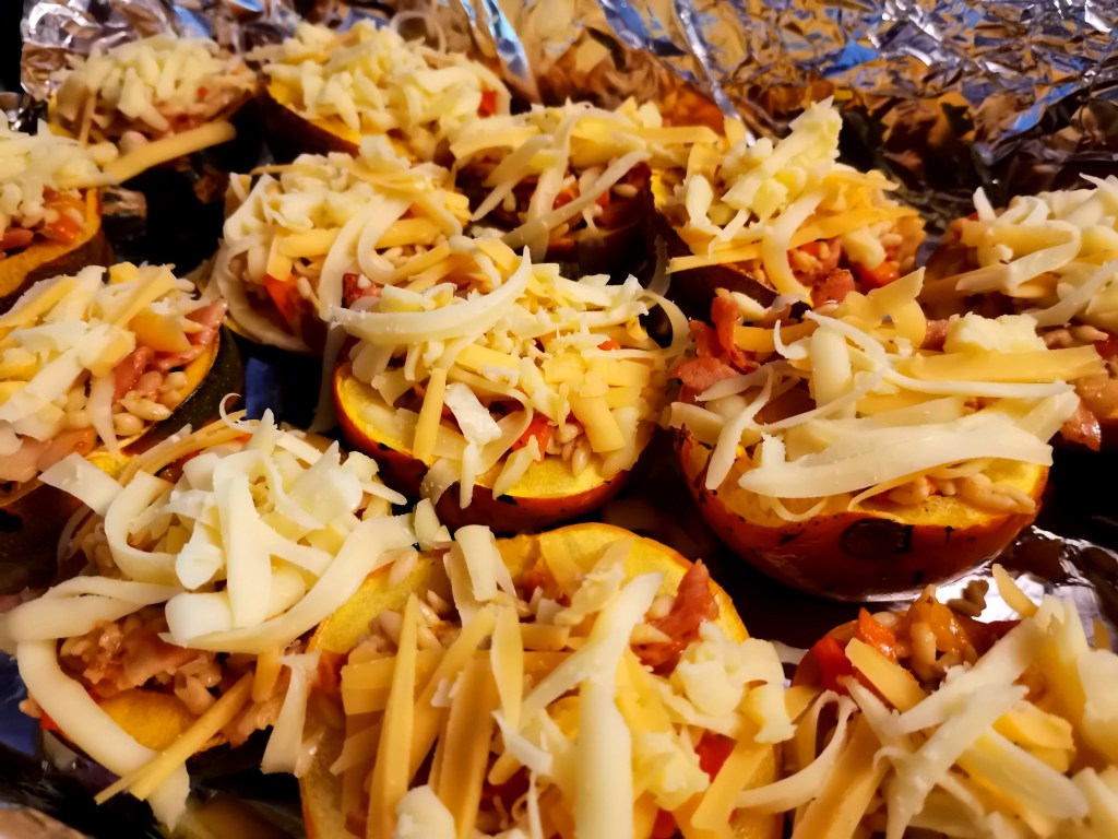 - Top each squash with grated cheese and place back in the oven with the grill/broiler on for 5 mins.